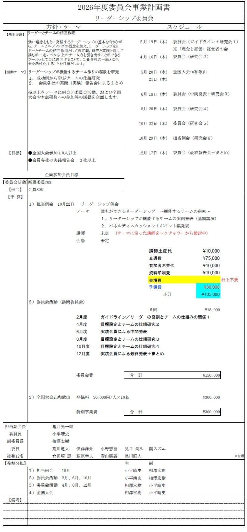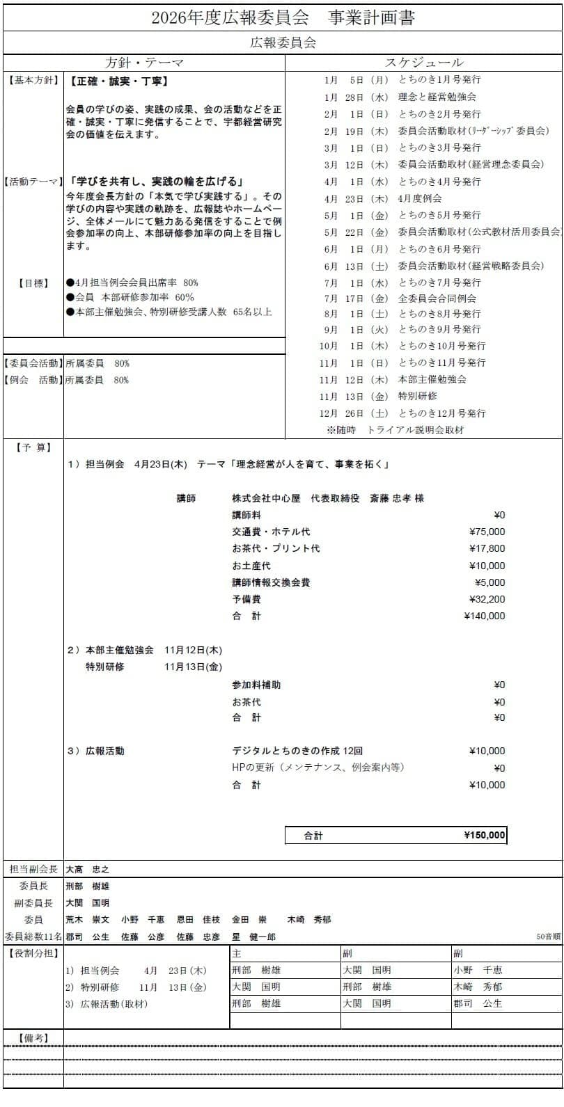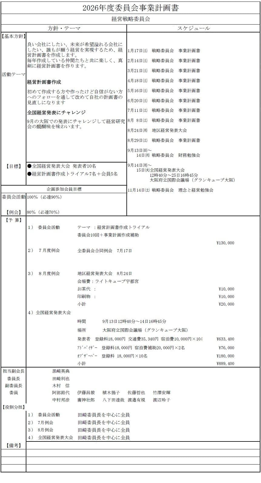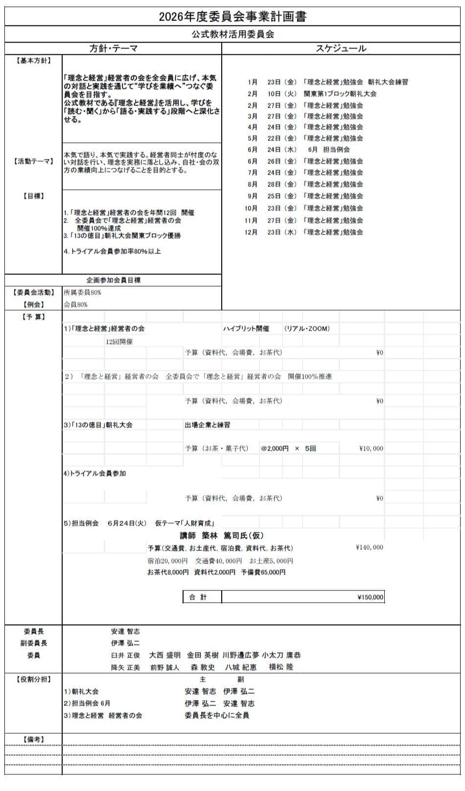 委員会別事業計画書