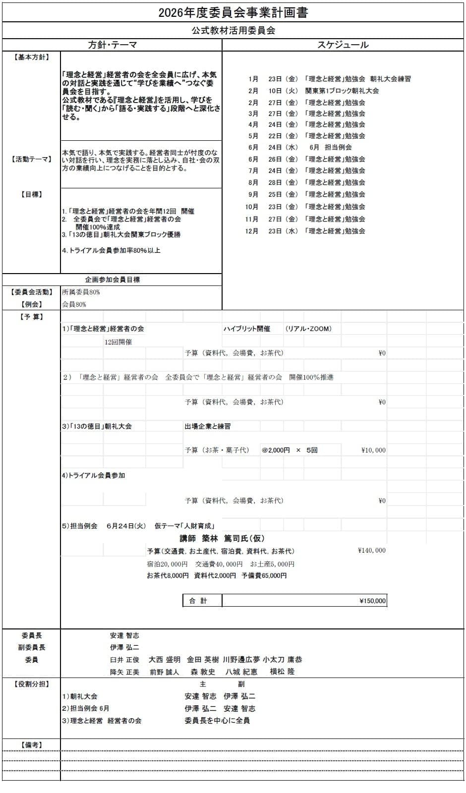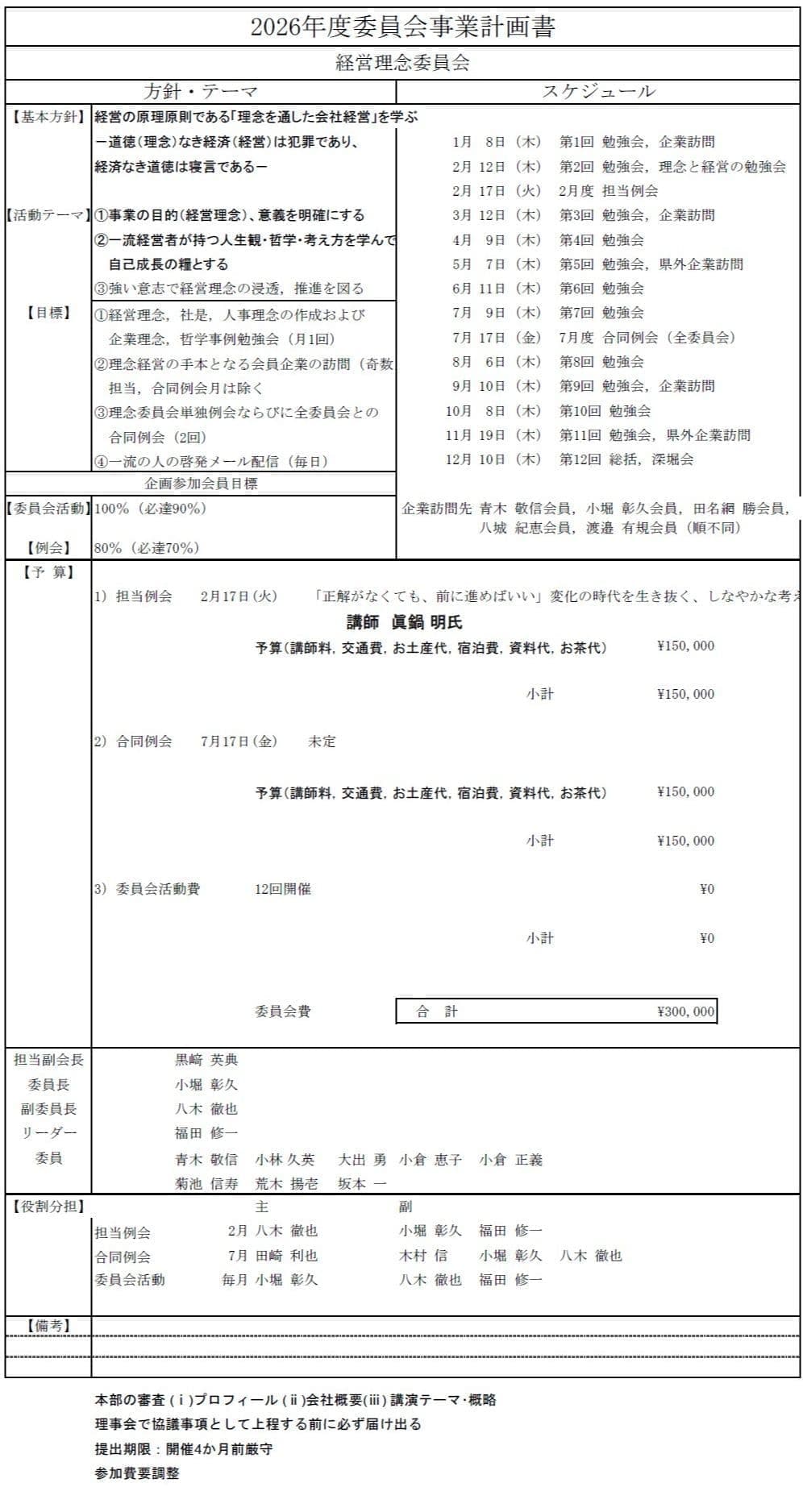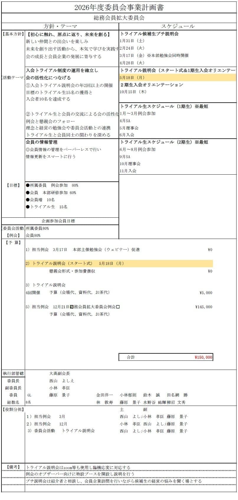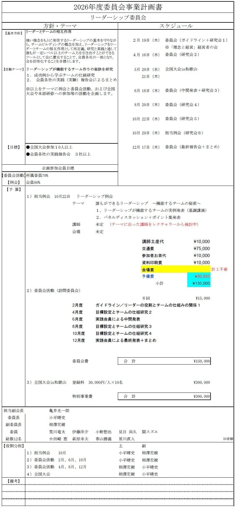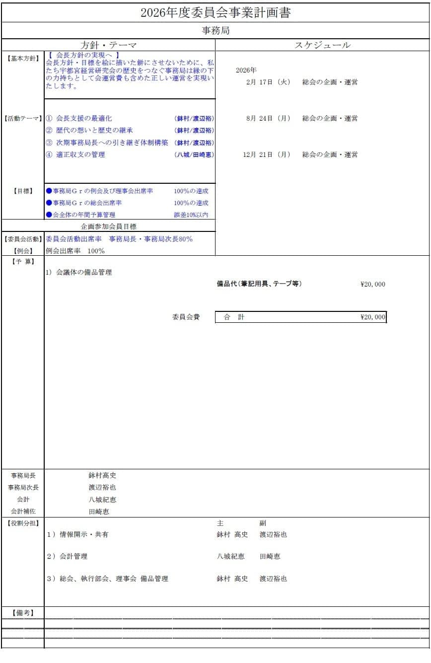 委員会別事業計画書